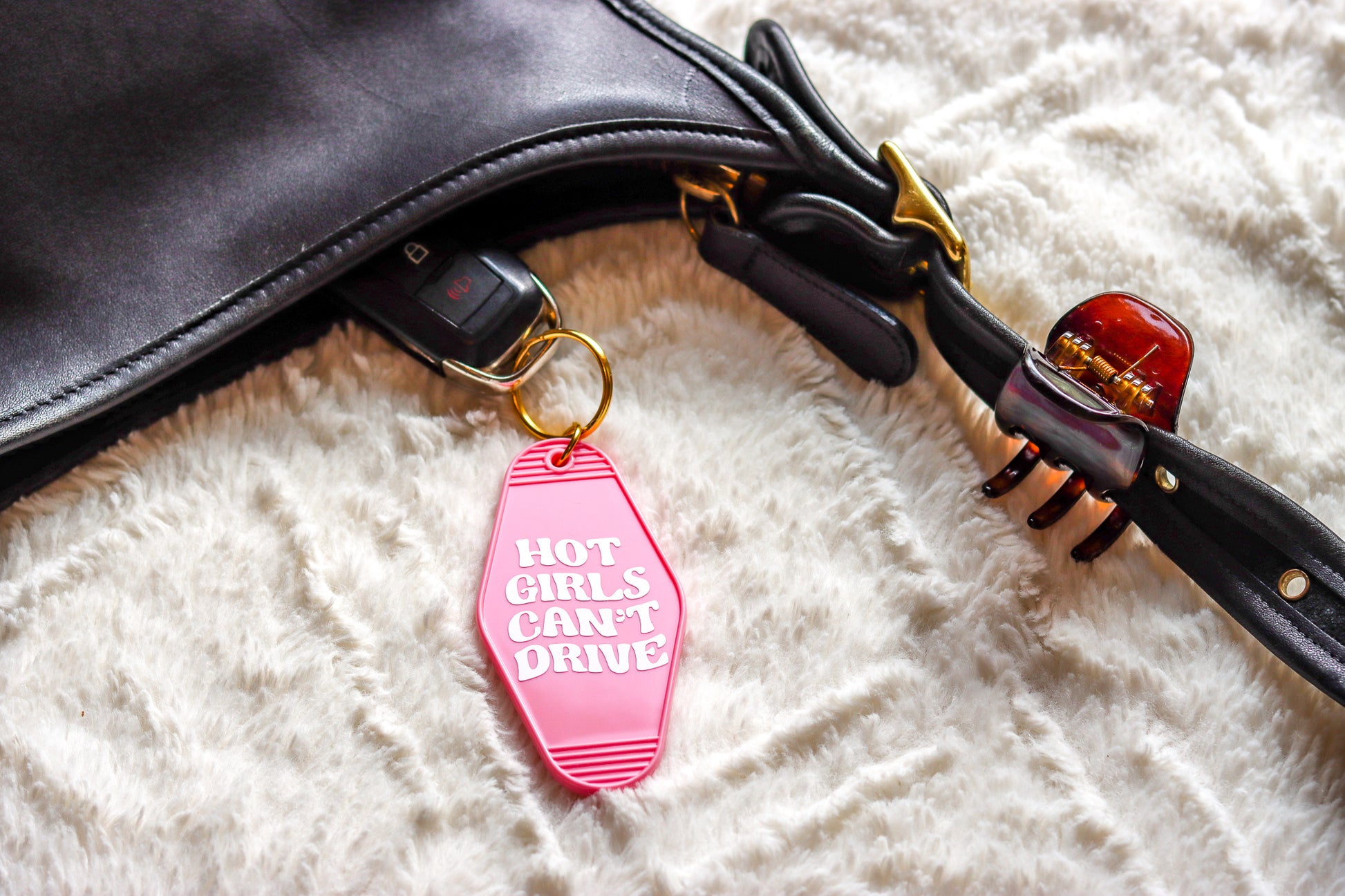 Retro motel style keychain measures 3.5". x 1.75" (not including hardware).