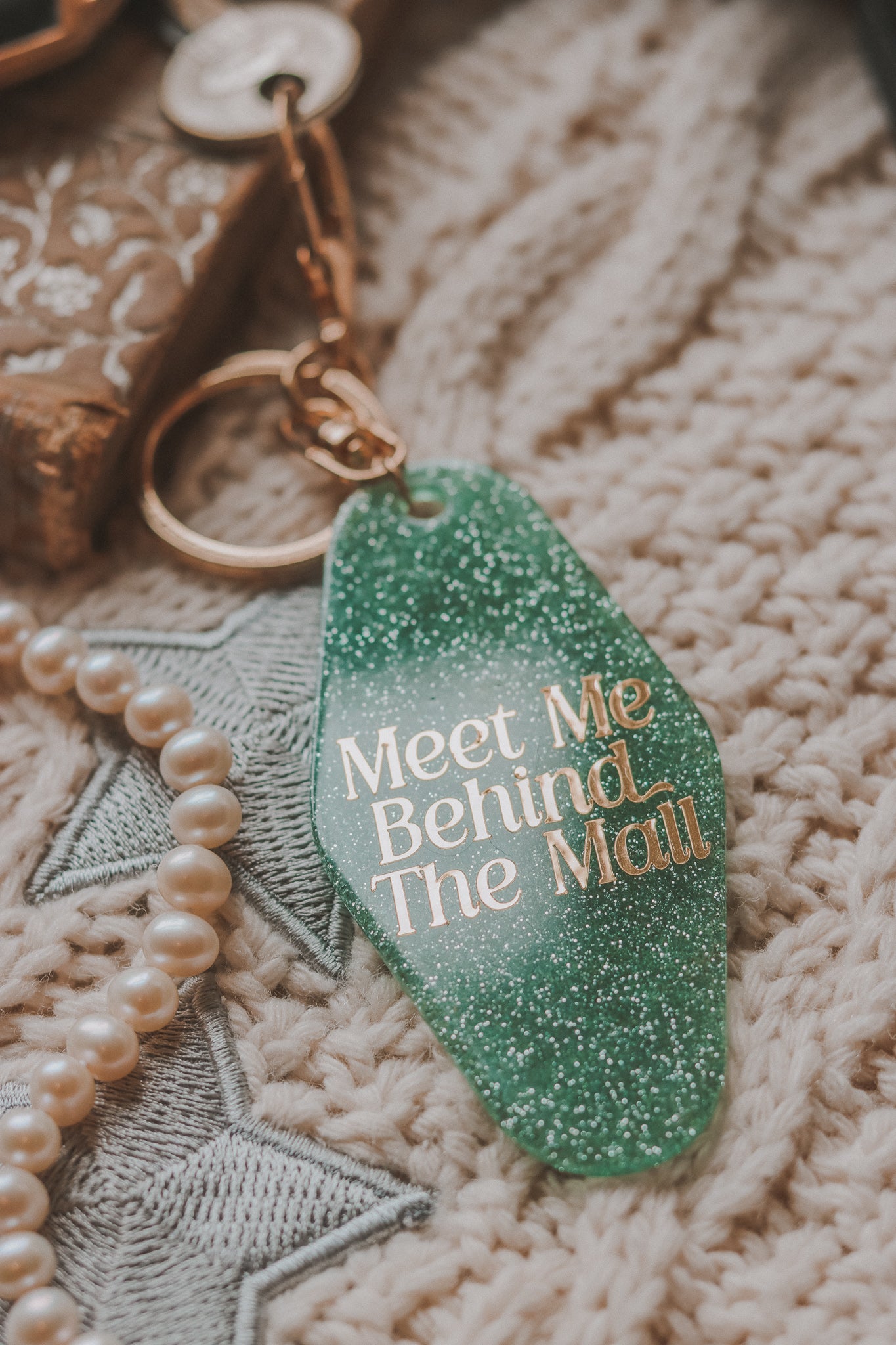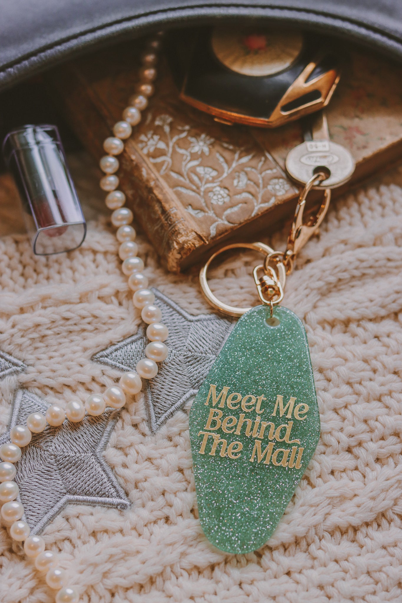 These luxe motel style keychains are a sparkle light green with gold design, and gold hardware. Keychain measures 3.5" x 1.5" (Not including hardware).
