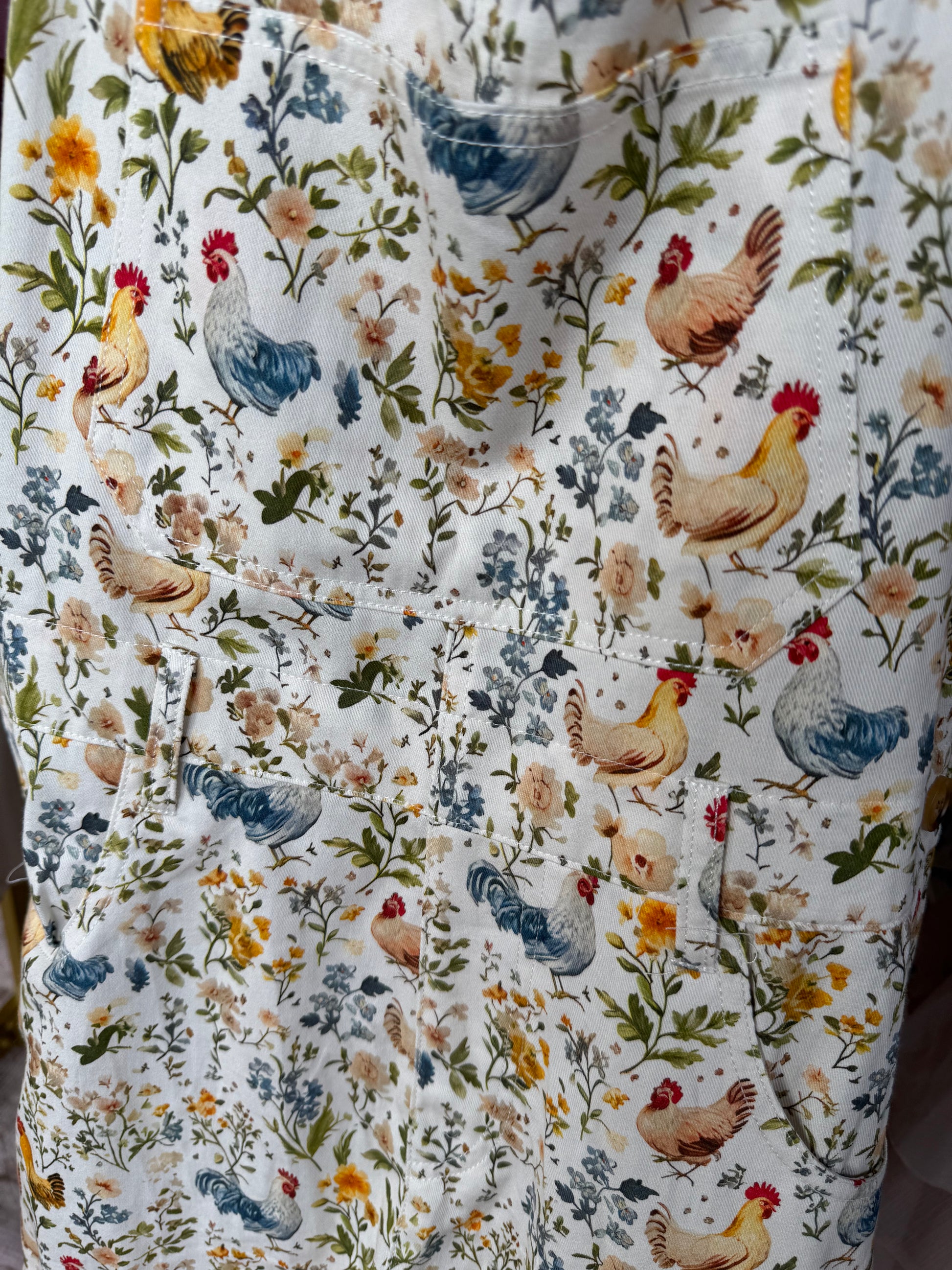 Rooster and Floral Print Shortalls